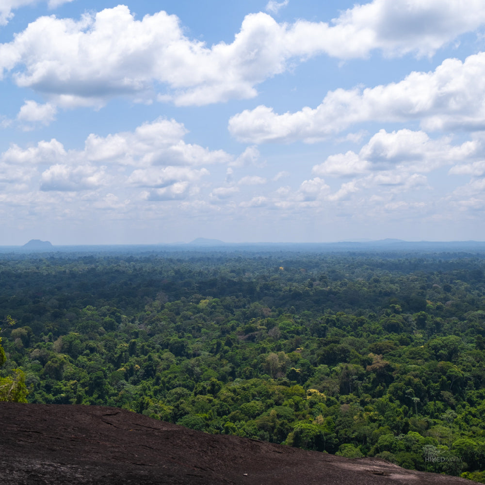 The trail begins at the serene banks of the Coppename River, winding through lush jungle paths surrounded by towering trees and diverse wildlife. Along the way, hikers may spot tropical birds, monkeys, and other native species that thrive in the protected reserve. The dense vegetation eventually gives way to the rocky ascent of the Voltzberg, a bare granite outcrop shaped over millennia.